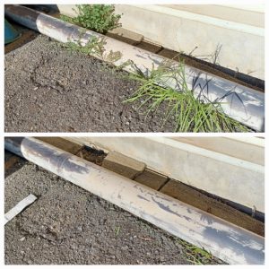 側溝の泥を取ったり雑草を刈ったりして